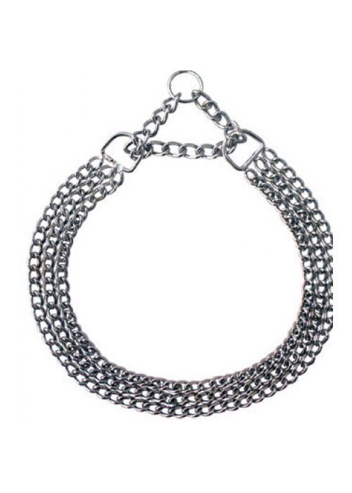 Ошейник-удавка из трех рядов металлических звеньев создан для безопасного выгула активных и сильных собак. Звенья имеют гладкую поверхность и плотно скреплены между собой.