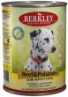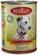 - Мясные консервы для собак Беркли в достаточном количестве содержат натуральный белок: 70% – высококачественное мясо, 25% – бульон.